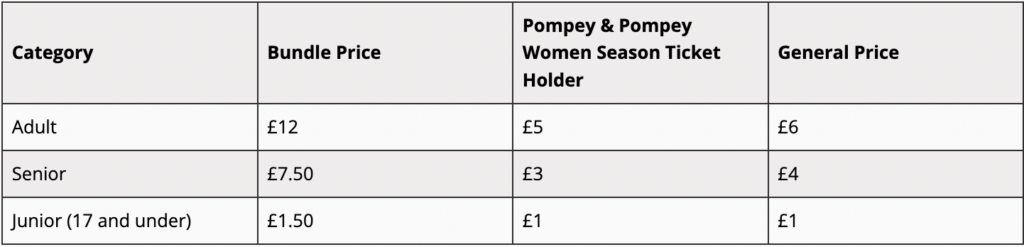 A bundle ticket for all three matches is available for £12 for adults, £7.50 for senior citizens and just £1.50 for under-17s – and even cheaper for Pompey season ticket holders.